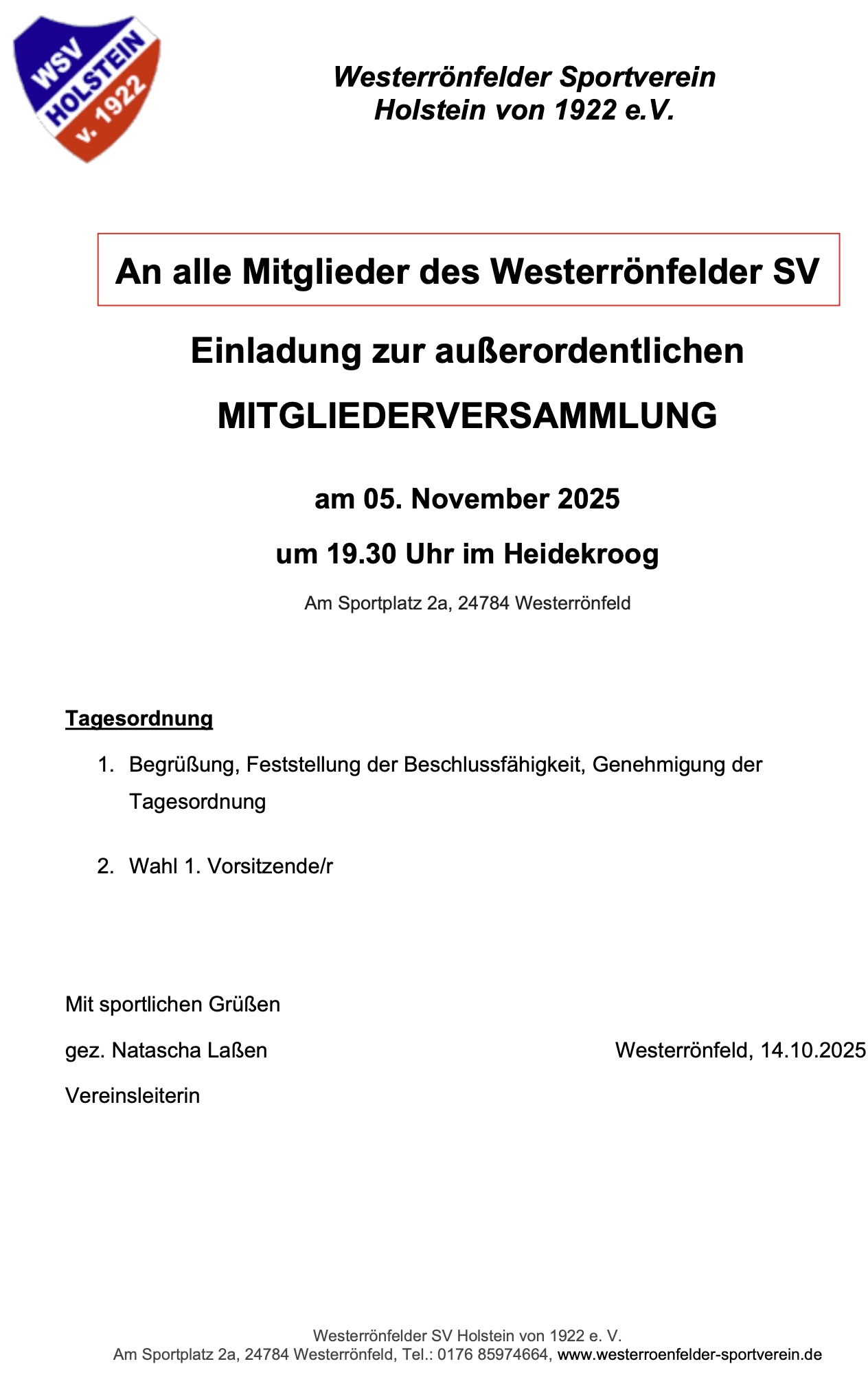Einladung zur außerordentlichen Mitgliederversammlung