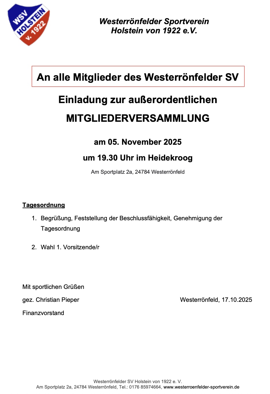 Der Westerrönfelder Sportverein sucht Verstärkung für den Vorstand: